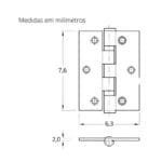 Dobradiça Porta Madeira Média 3×2.1/2 Inox Escovado 9 Peças