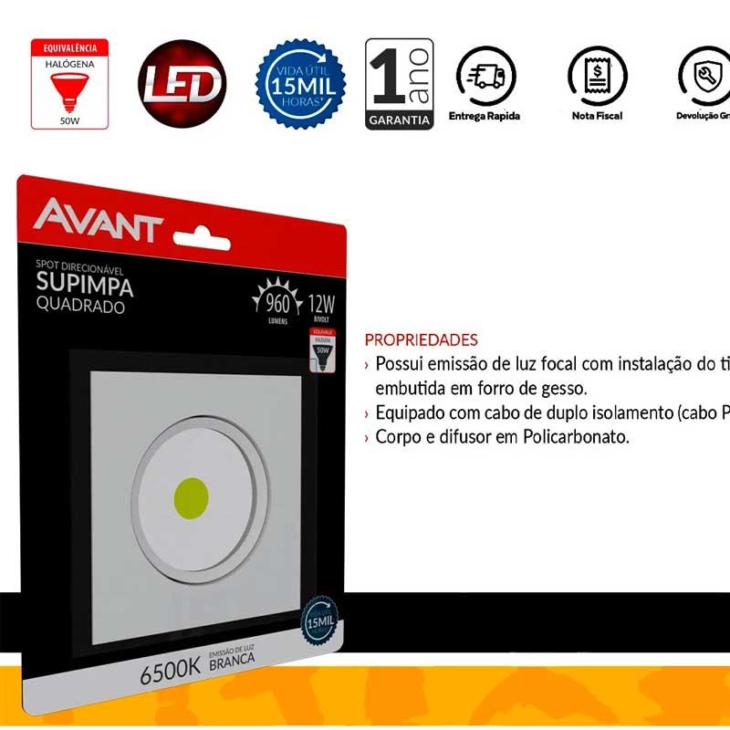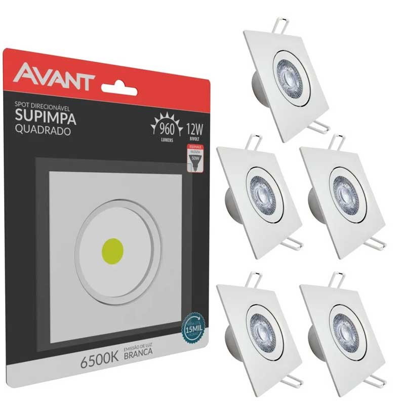 kIT 10 Spot Led Cob Embutir Quadrado 12W Supimpa Avant 6500K