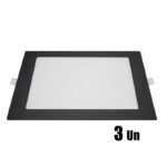 Kit 3 Plafon Painel Led Emb Quadrado Preto 6500k 22×22 18w