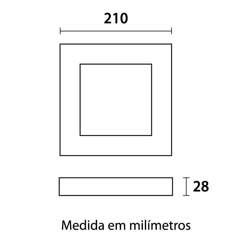 Kit 5 Plafon Led Sobrepor Quadrado Preto 3000k 18w 22×22