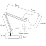Sua haste flexível possibilita o direcionamento da lâmpada. A Luminária serve para todo o tipo de lâmpada com bocal E27: incandescente, mini spot, PAR20, PAR30, fluorescentes econômicas, leds, coloridas.