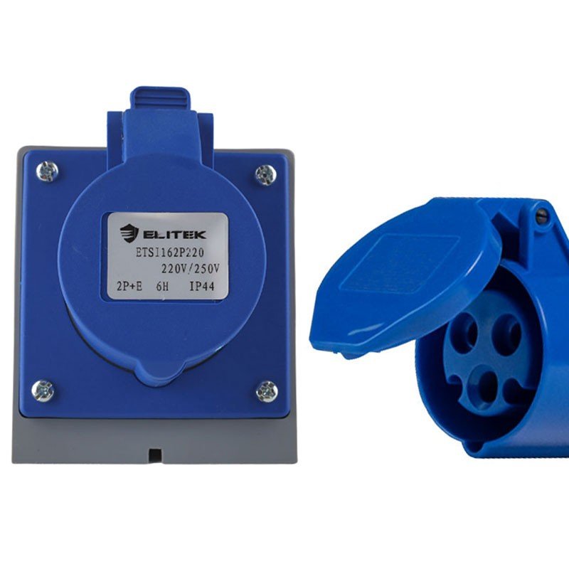 Tomada Industrial Embutir 2P+T 32a Elitek 6h IP44 Azul