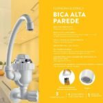 Torneira Elétrica 127v 4400w Bica Alta Parede Branca Sintex